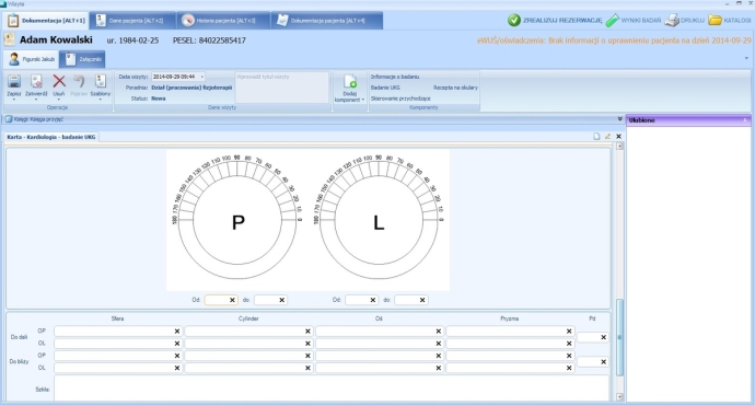 - elastyczne tworzenie i dostosowywanie szablonów kart wizyty do potrzeb lekarza oraz danej specjalności